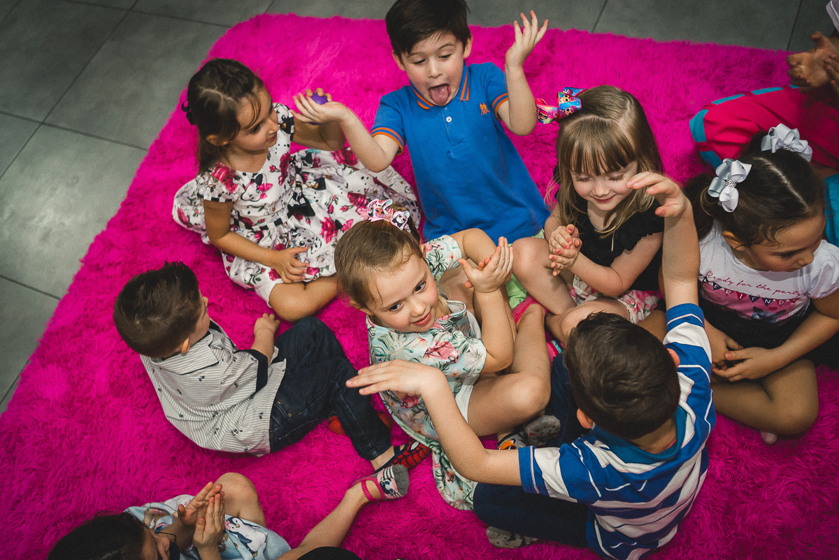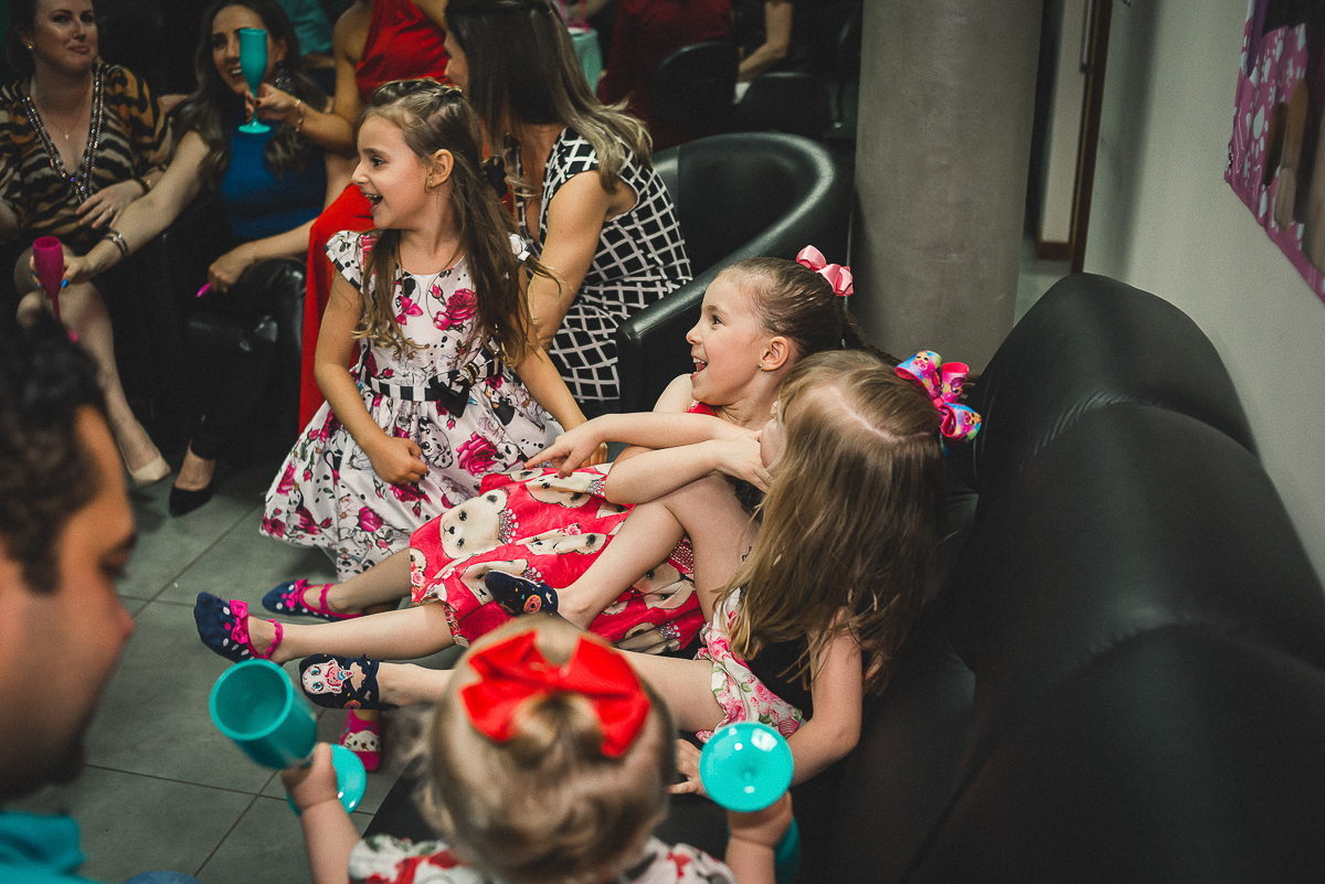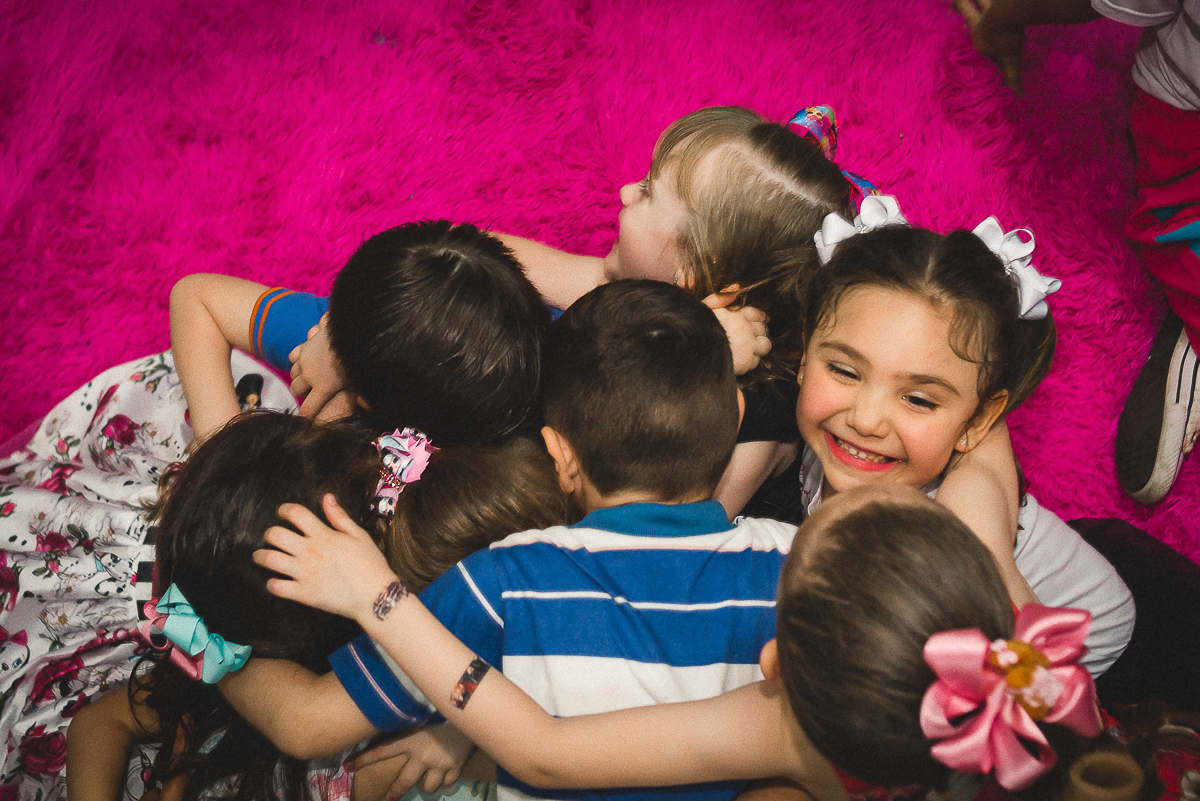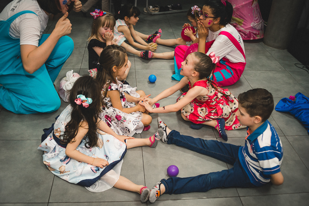 Sua festa de 5 anos foi demais! Ela se divertiu muito com seus amigos e familiares, a recreação comandada pela tia Miche e sua equipe fez a gurizada agitar muito!