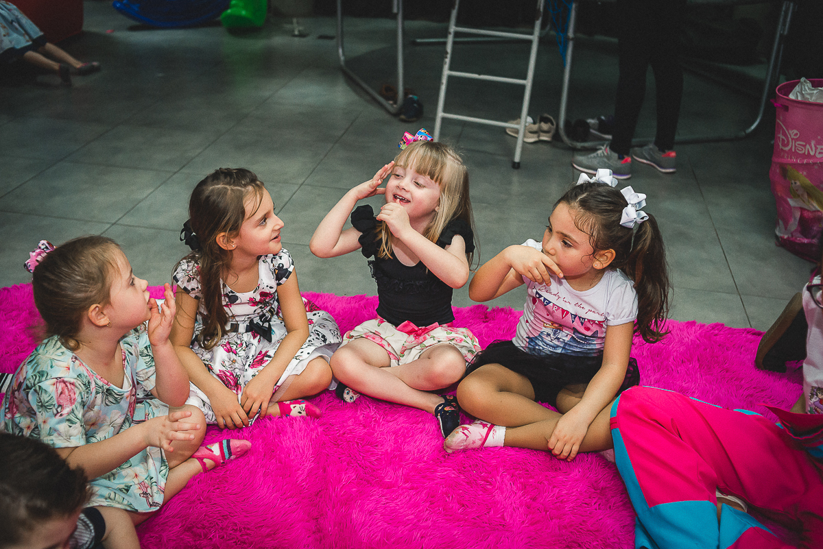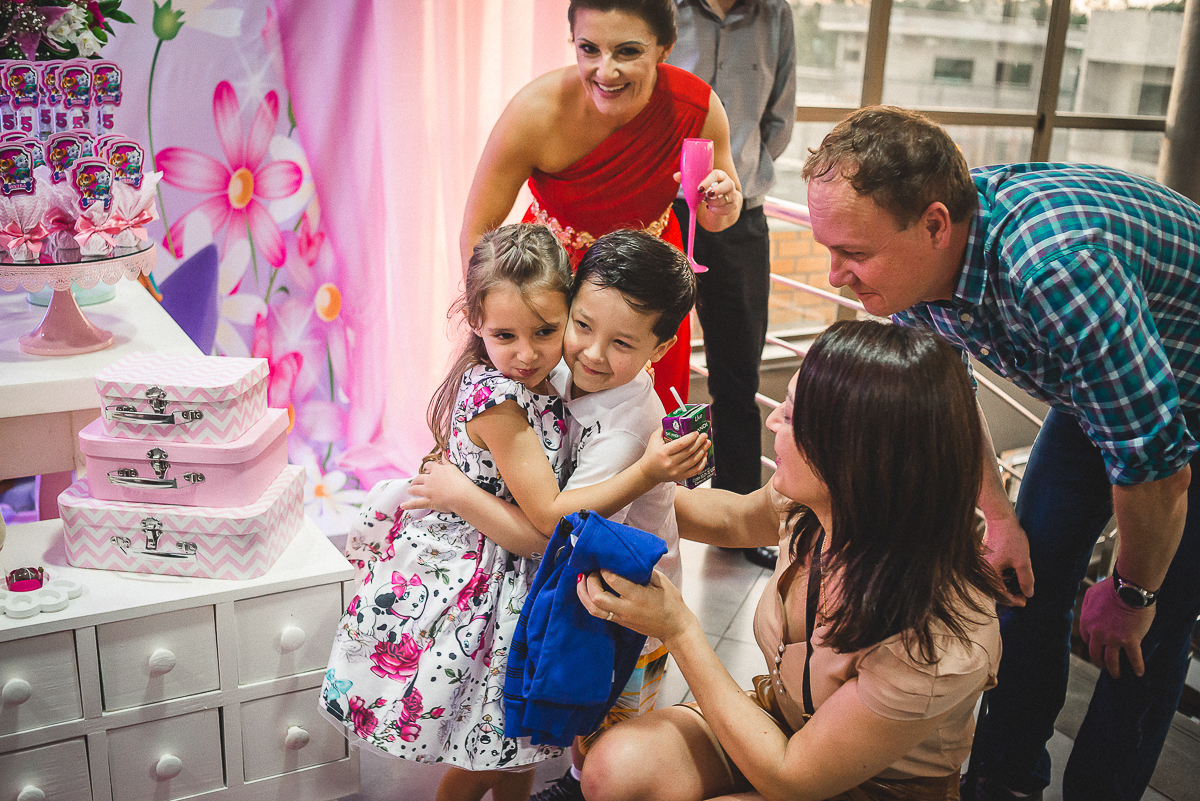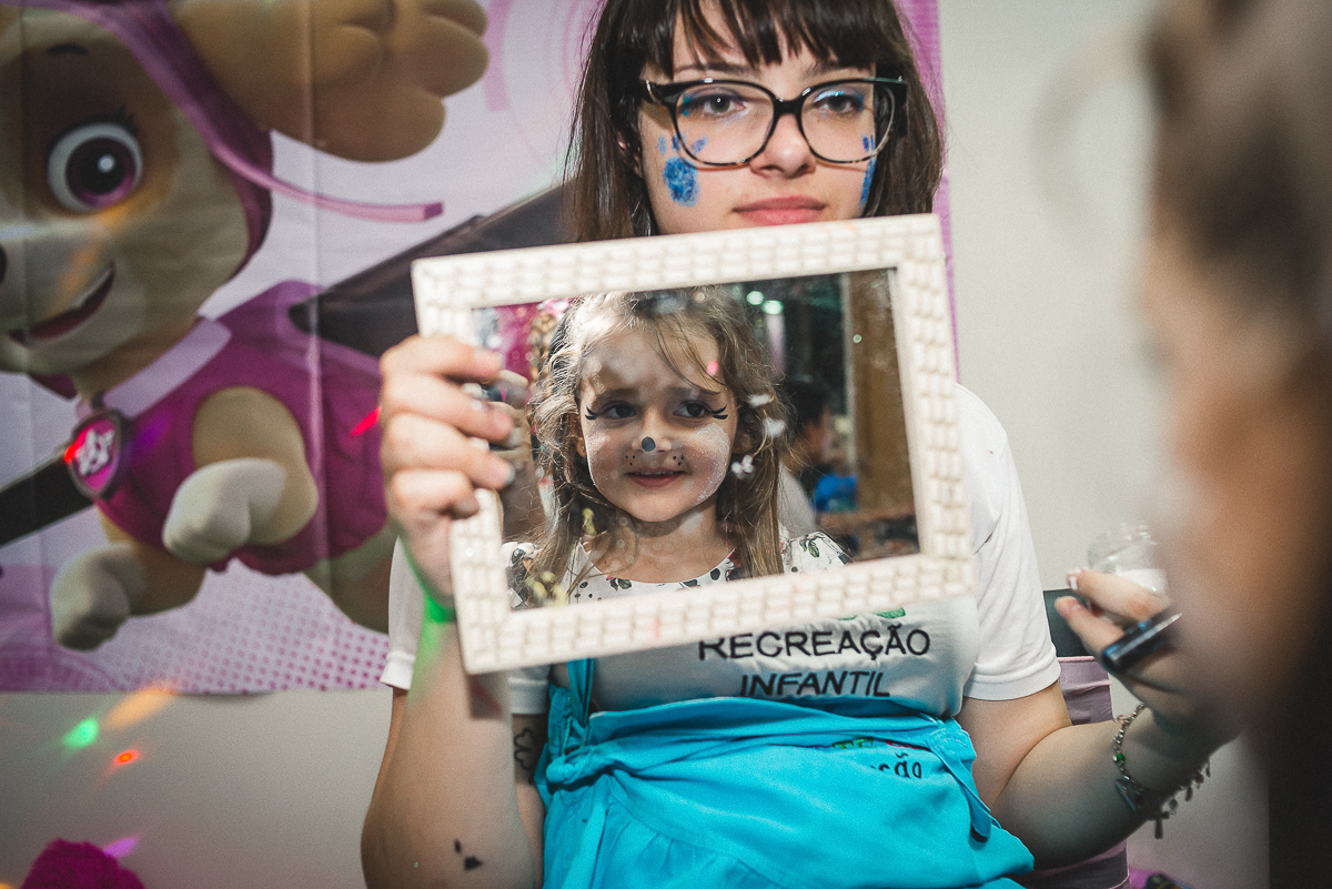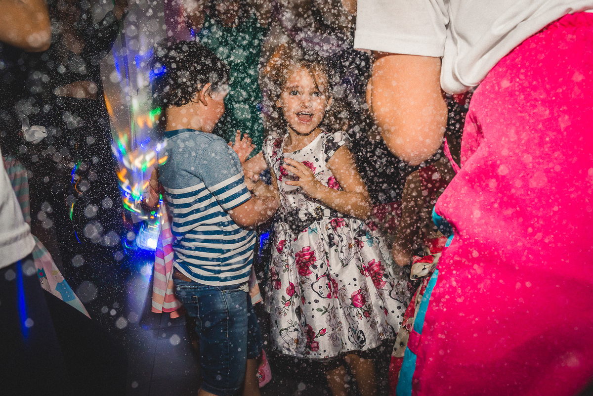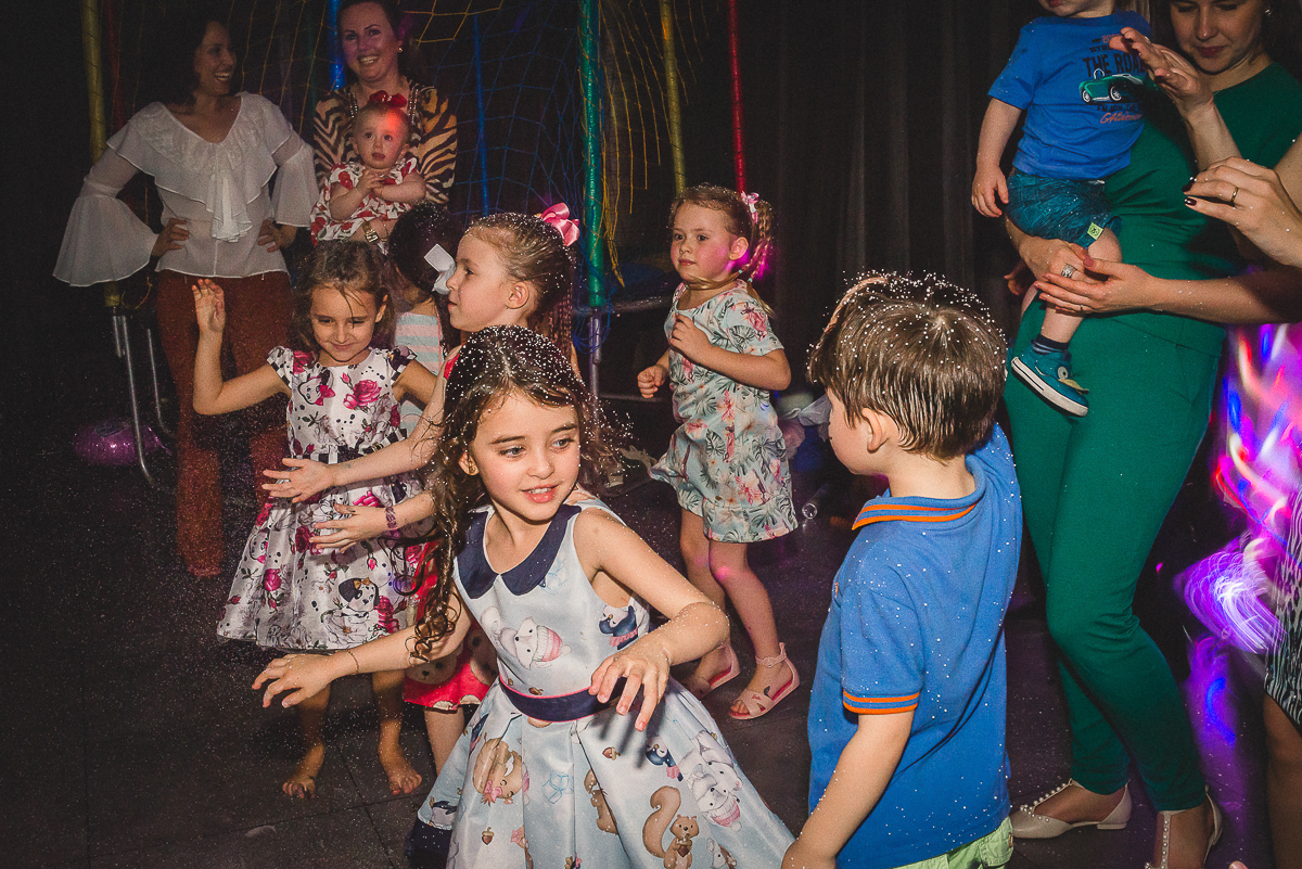 Sua festa de 5 anos foi demais! Ela se divertiu muito com seus amigos e familiares, a recreação comandada pela tia Miche e sua equipe fez a gurizada agitar muito!