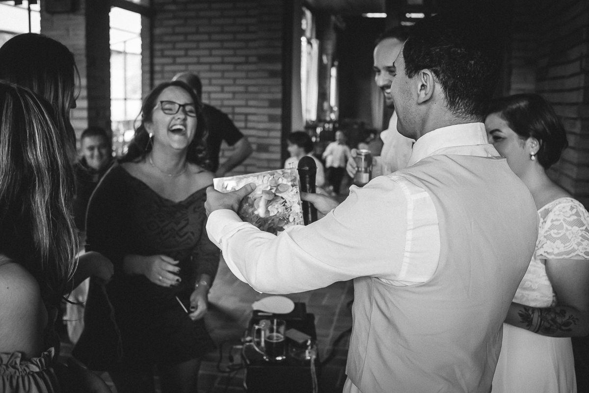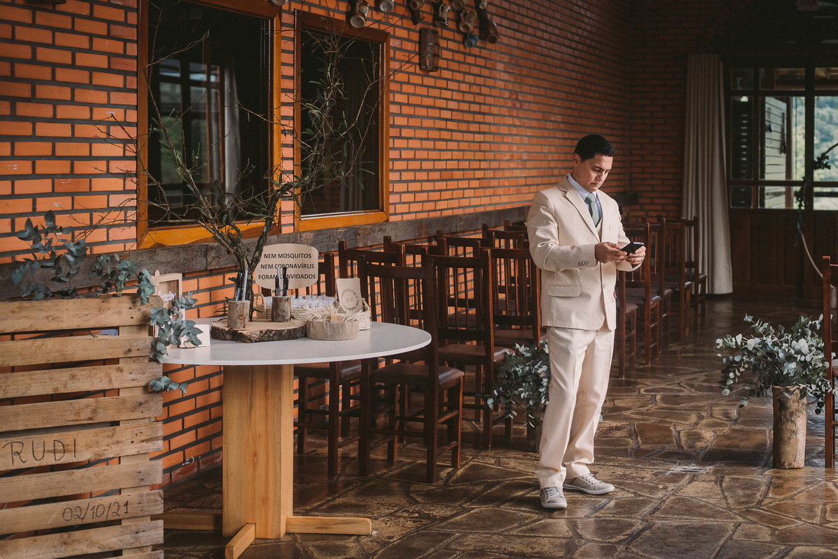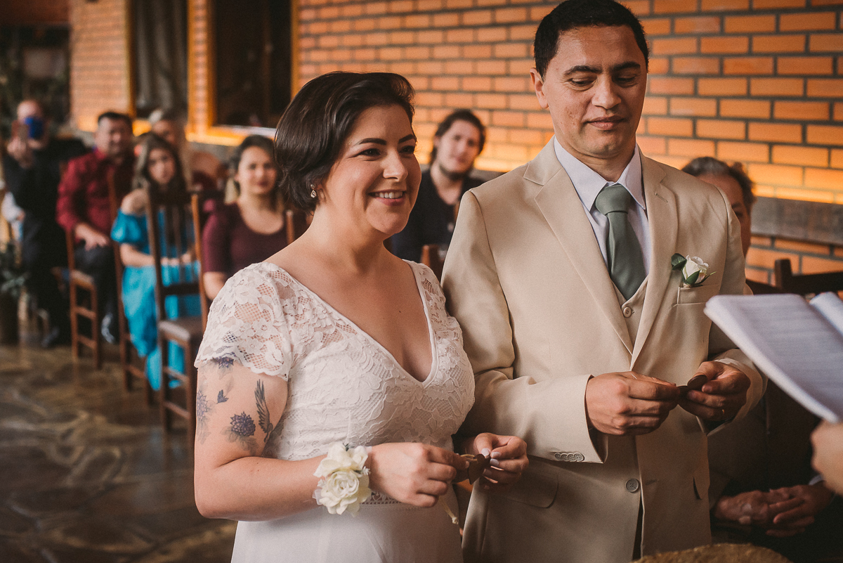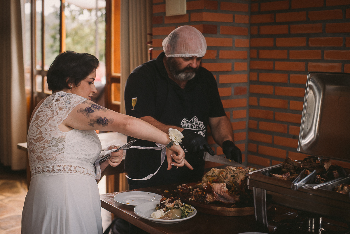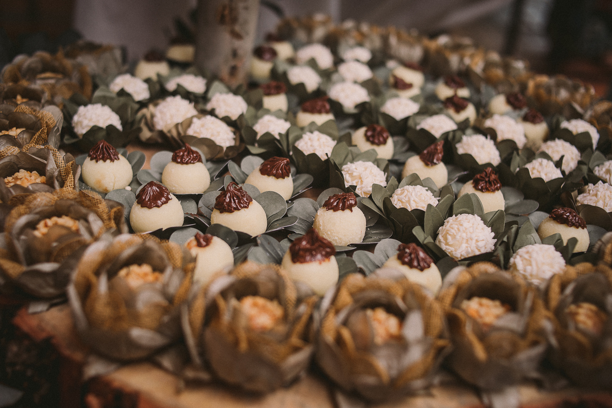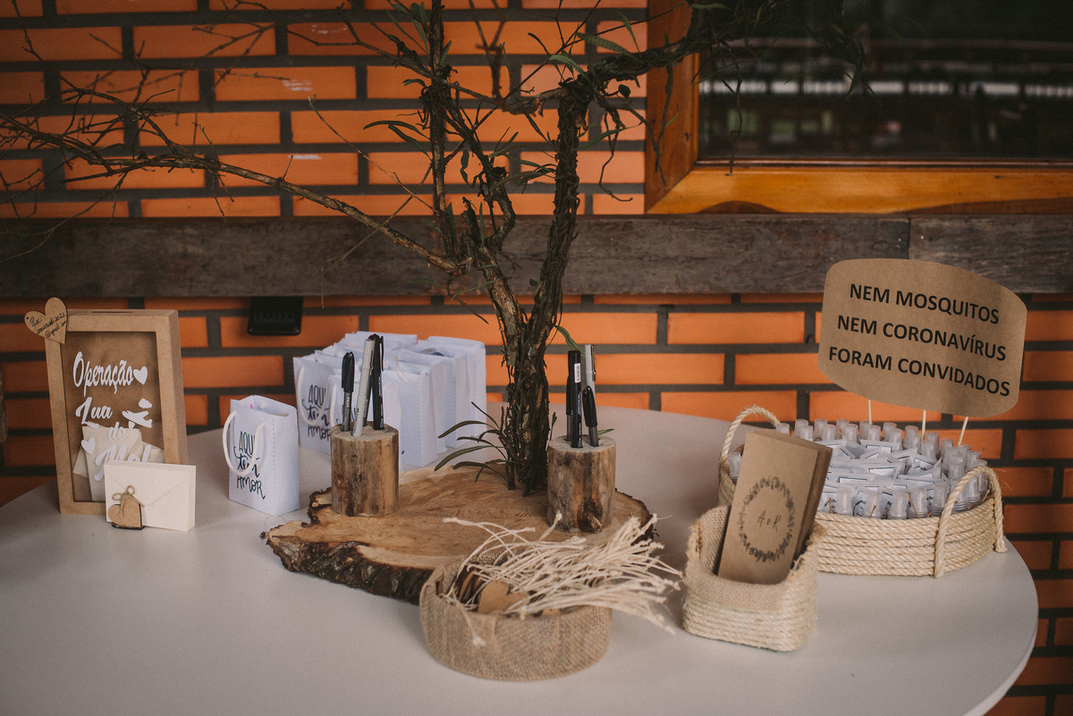 A Ana gosta de trabalhar com madeira, ferramentas e essas coisas, então providenciou junto com o Rudi toda a decoração rústica e linda que a gente vê aí nas fotos. Os dois também fizeram os licores e o doce de leite que eram entregues aos convidados como lembrança do dia.