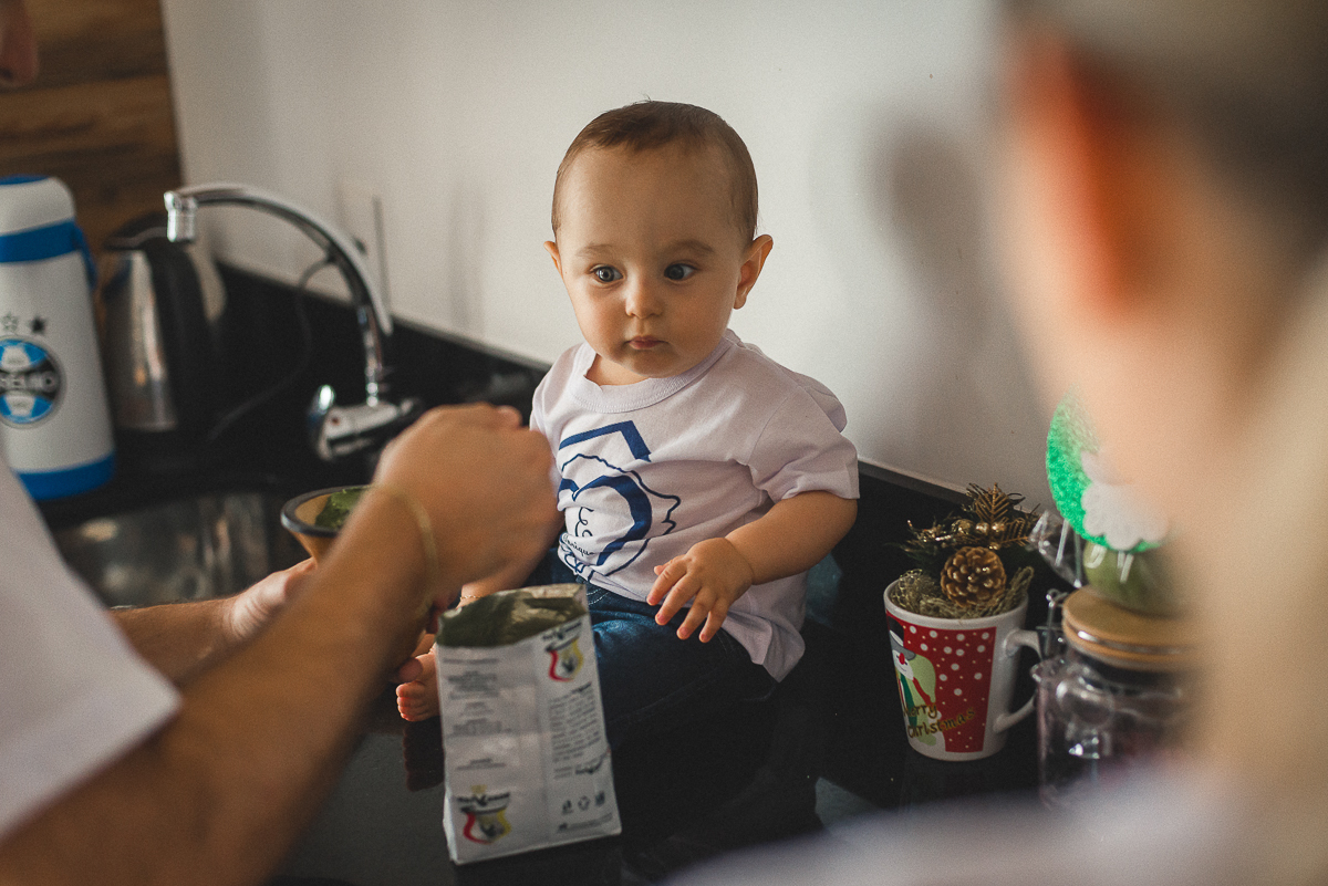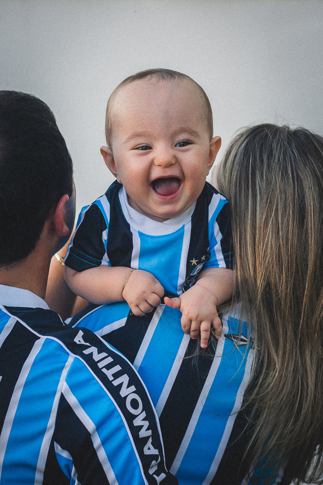 A família é apaixonada pela tradição gaúcha e pelo Grêmio, então, não poderiam faltar as fotos com a camiseta do tricolor e o Smash de chimarrão!