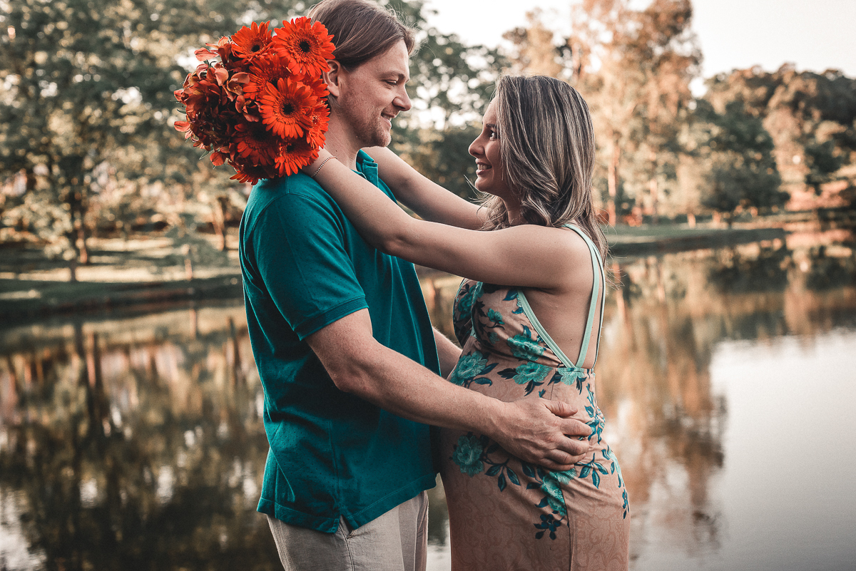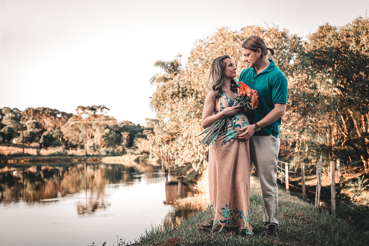 A Etiane e o Antônio decidiram fazer o ensaio da espera pela Isadora no sítio da tia Flávia, onde eles se identificam, onde estão acostumados de estar. As fotos acabaram ficando a cara deles e com toda a certeza vão trazer lembranças lindas toda vez que as olharem. A pequena também vai poder experimentar a cada vez que estiver no sítio, o que os papais curtiram ali, ainda com ela na barriga.
